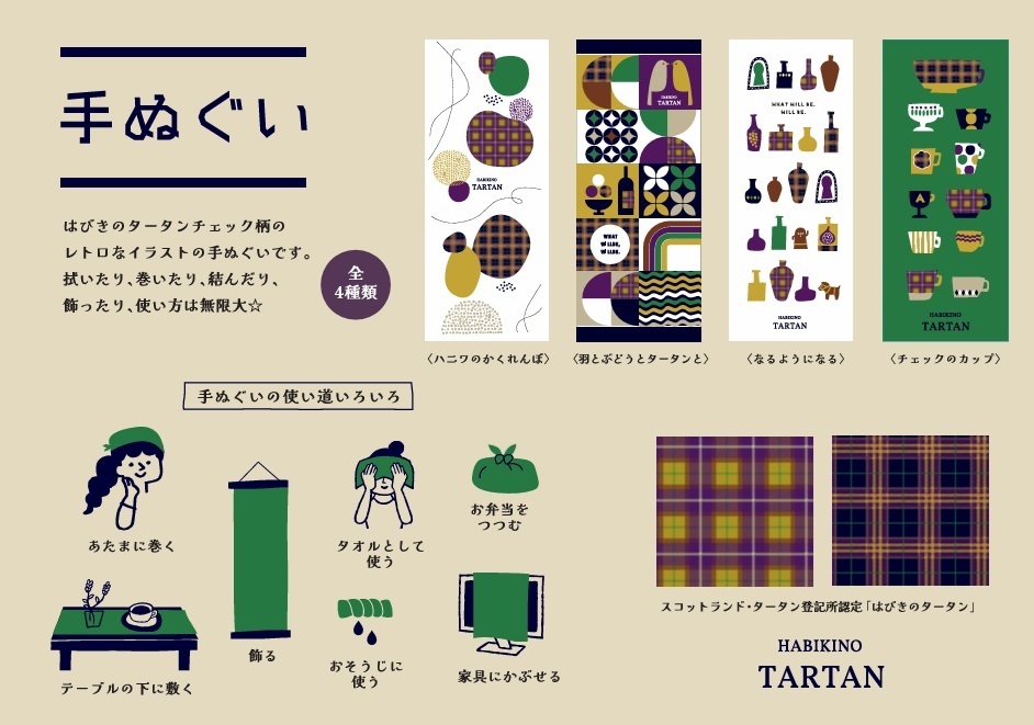 スコットランド・タータン登記所認定の「はびきのタータン」から地元の魅力が詰まった「手ぬぐい」が登場。