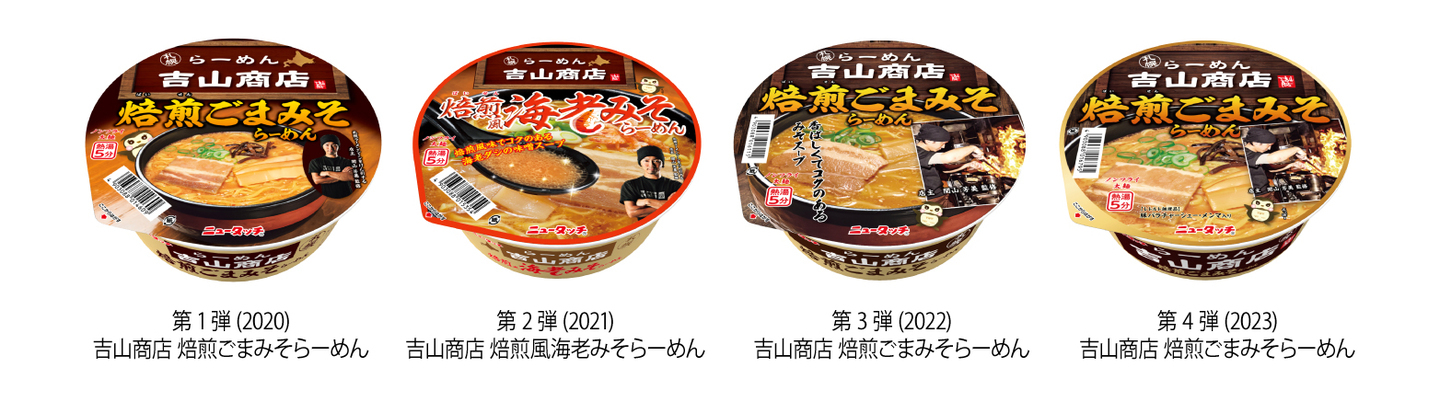 「吉山商店」は札幌市内に本店を置き国内外に10店舗を展開する人気のラーメン店です。ヤマダイでは2020年から毎年、店主・関山芳美氏監修のもと、お店の人気メニューを再現したノンフライカップ麺を発売しており、大人気商品となっております。この度、多くのお客様からの再販のご要望を受け、第5弾コラボ企画として、お店一番の人気メニュー「焙煎ごまみそらーめん」を3年連続で再現し、期間限定発売いたします。
