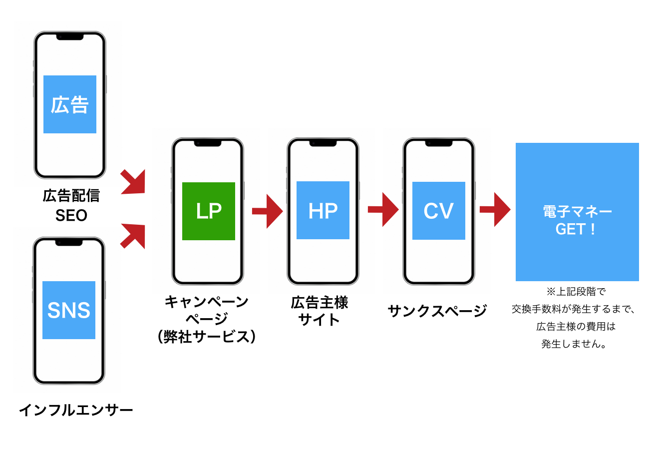 【人気の電子マネーを活用したキャンペーンを簡単に実施可能】【広告効果促進ツール】ユーザー獲得を大幅促進!成果報酬型でCVRを向上できるユーザー獲得支援システム
