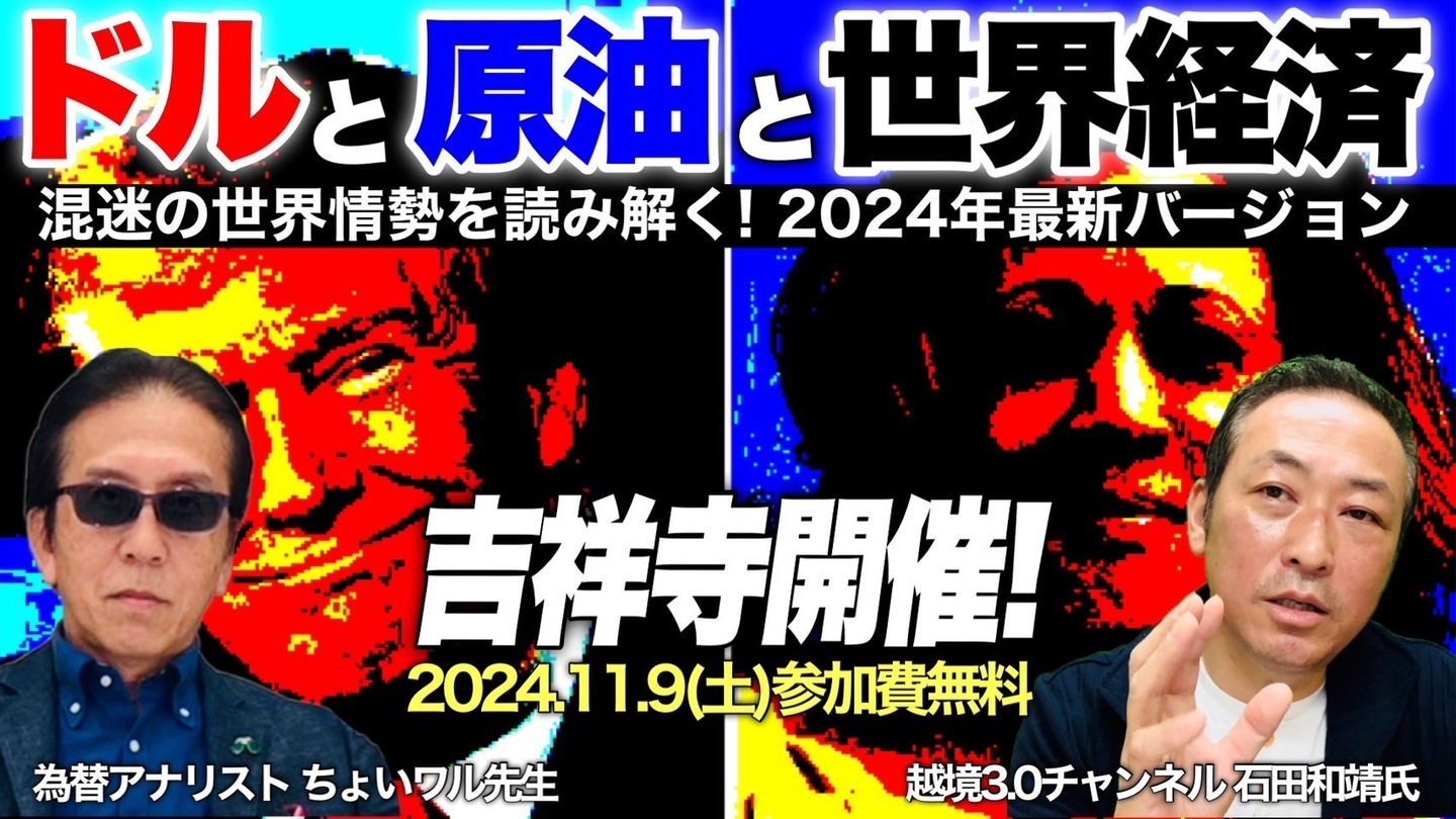 ◆国際情勢YouTuber石田和靖氏と岡安商事為替アナリストちょいワル先生のコラボセミナーを東京都武蔵野市にて開催します。