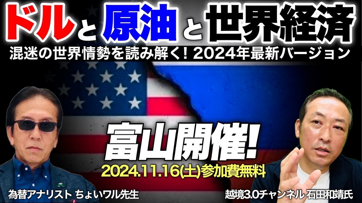 ◆国際情勢YouTuber石田和靖氏と岡安商事為替アナリストちょいワル先生のコラボセミナーを富山市にて開催します。
