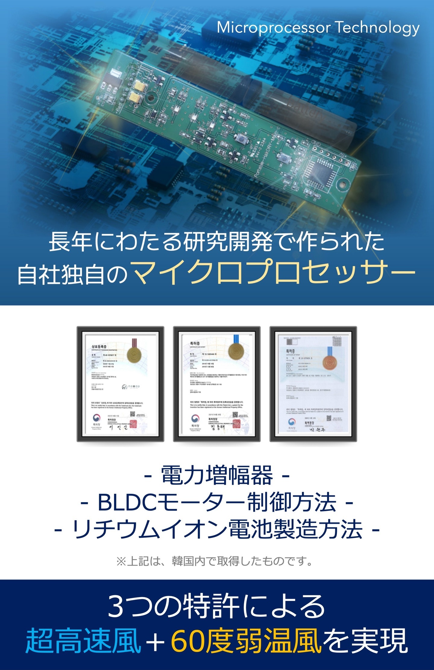 ❷ 90,000RPMの超高性能BLDCモーターが生み出す超高速風と60度弱温風で髪の毛サラサラ