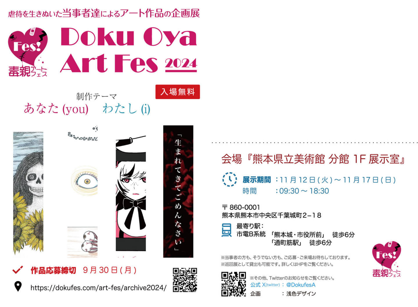 虐待を生き抜いた人々が絵や写真・文章など様々な形で表現した作品を展示する公募展、「毒親アートフェス」を熊本県立美術館分館にて開催します。