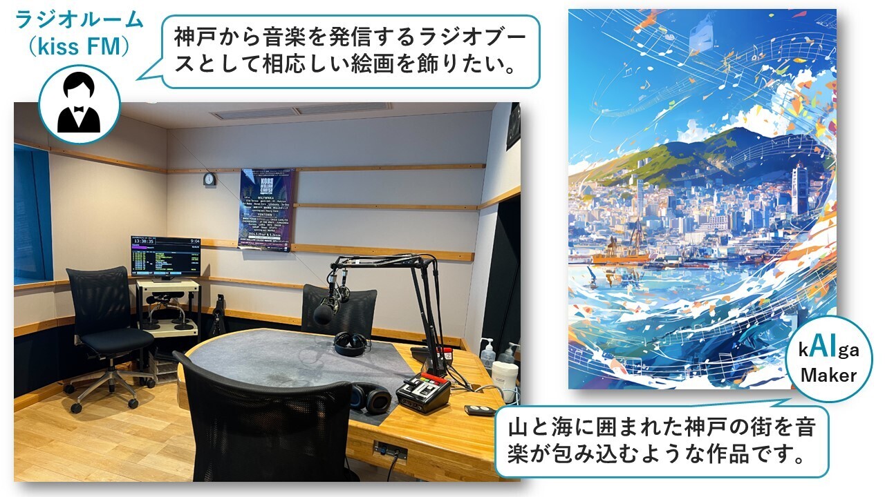 ユーザーの部屋の写真や希望からAI(人工知能)がその空間にあったオリジナルのインテリア絵画を制作、配送を行うサービス。AIがユーザーの部屋の色彩や希望に基づいて制作するため、デザインに自信がなくても写真を1枚撮るだけで、世界に1つだけのインテリア絵画を飾ることができる。特許出願済。神戸市AIスタートアップ創出事業採択。