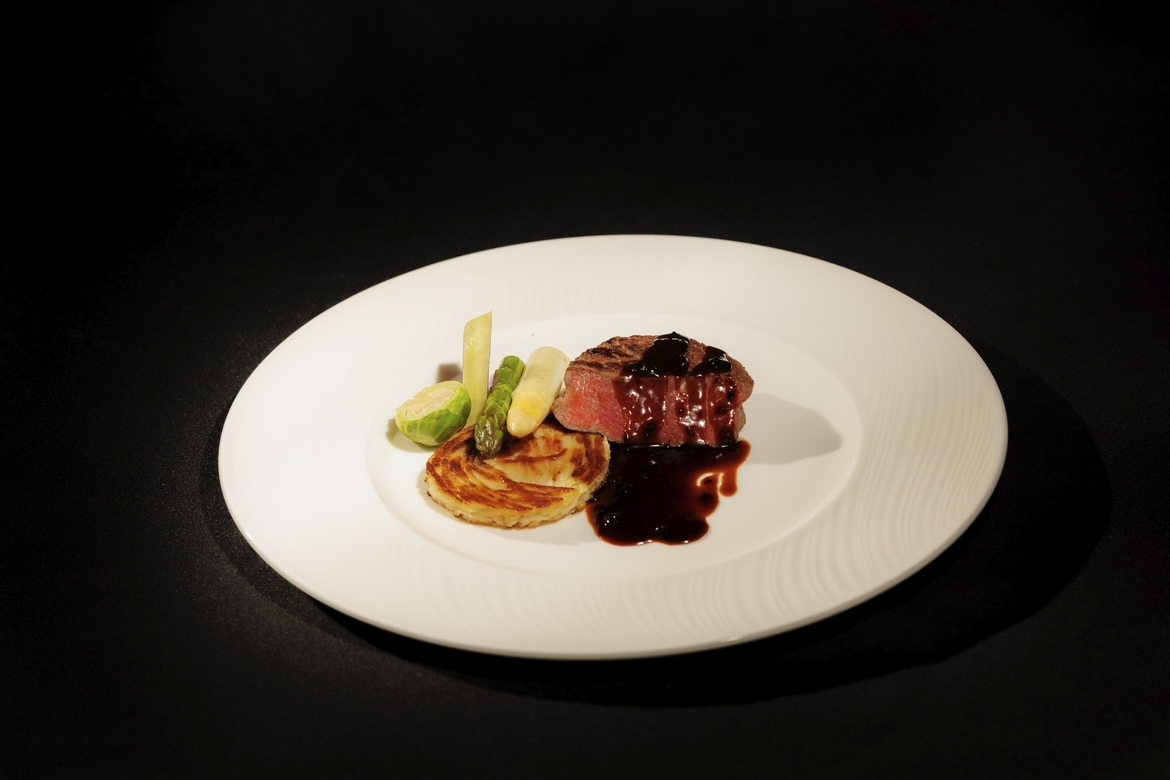 ・小豆島産オリーブ牛のロティ 熟成ポテトのガレット ソースペリグー