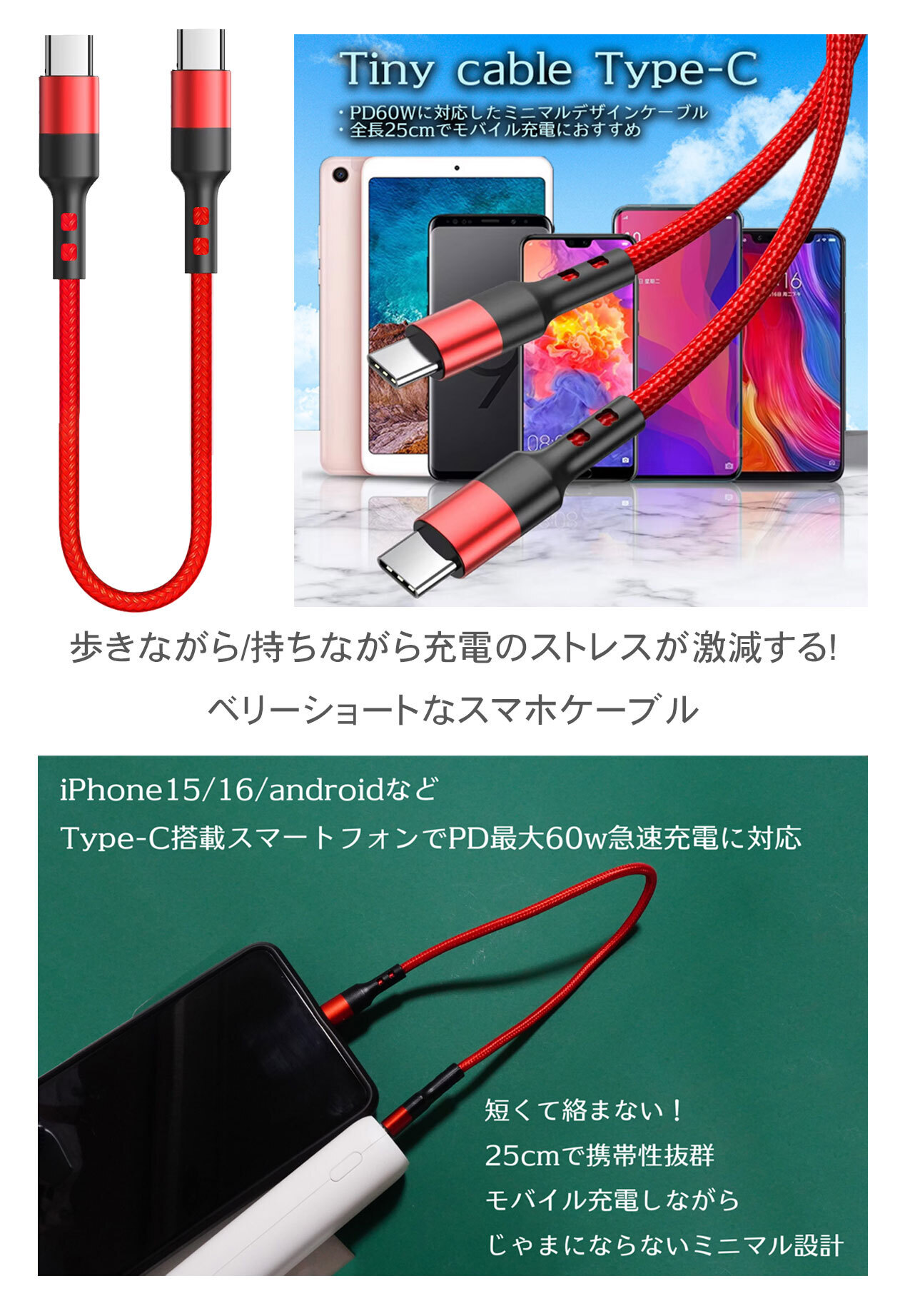USB-C & USB-C 2.0 ケーブル (25cm ブラック) 超高耐久 60W USB PD対応 iPhone 15/16 MacBook Pro/Air iPad Pro/Air XIAOMI/Xperia/Galaxy 等対応