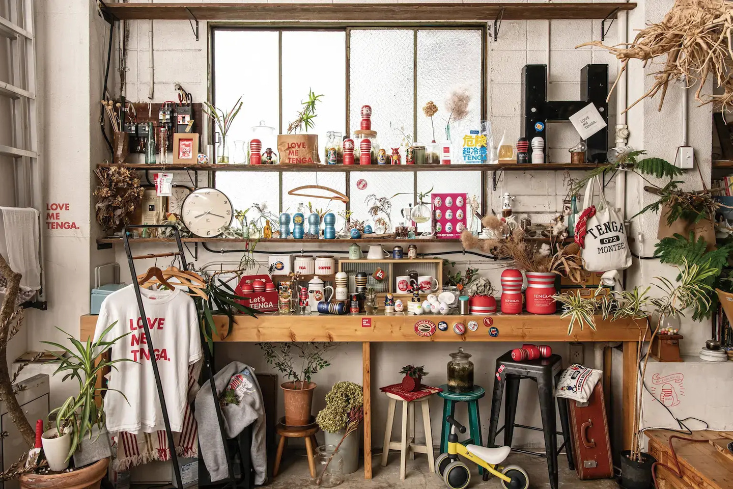 TENGAロボが入口でお出迎えするほか、TENGAのカップを積み上げた「TENGAタワー」、TENGAティッシュケース、TENGA特製クッション、ポスター展示などでTENGAブランドの世界観をお楽しみいただけます。