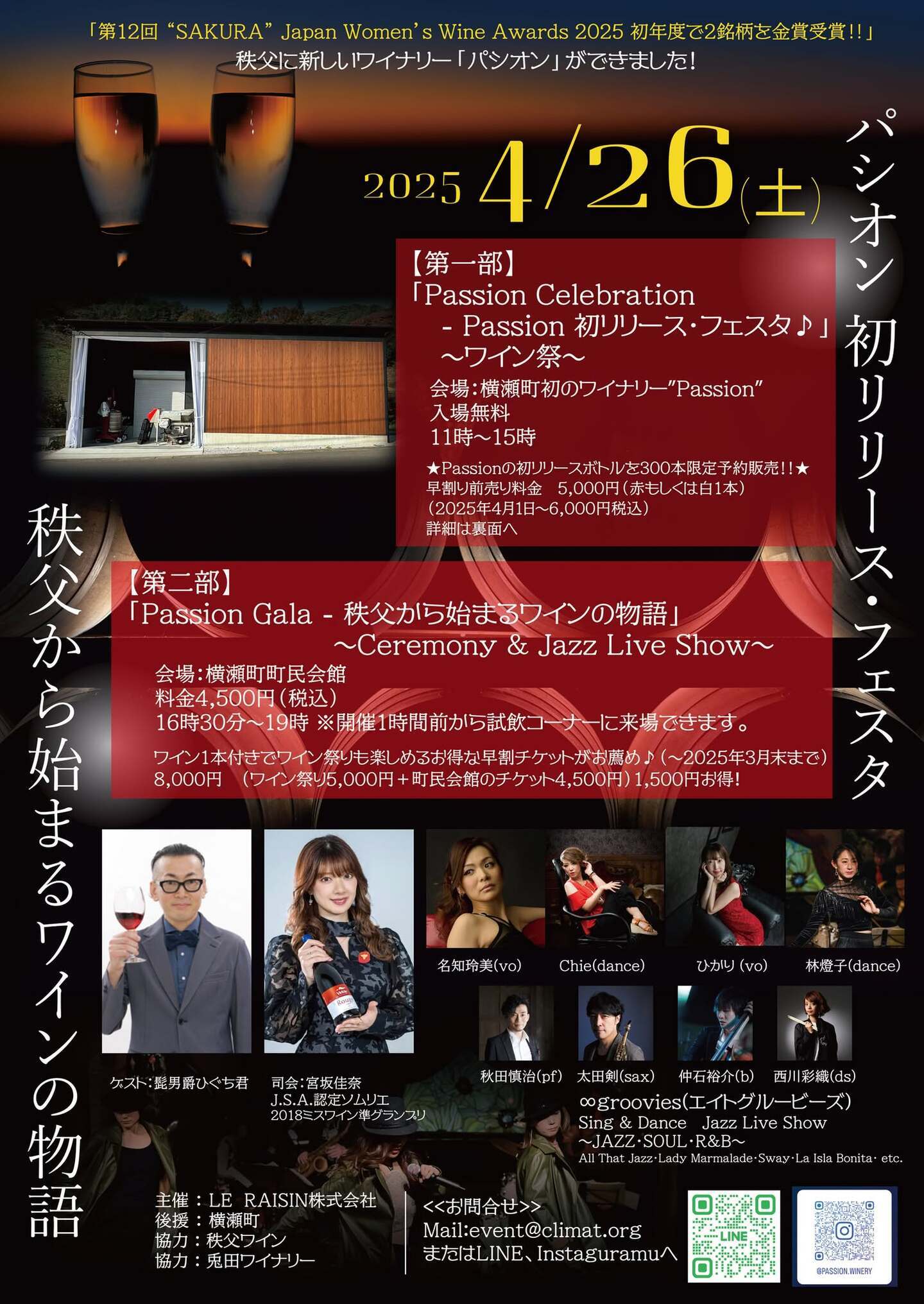 埼玉にある新進気鋭のワイナリー「パシオン」が2025年4月26日(土)に初リリース記念として、二つのevent開催します!