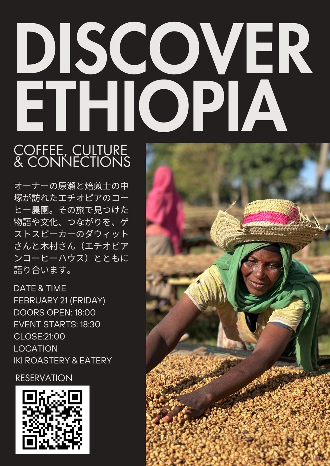 「コーヒー発祥の地」として知られるエチオピア。豊かな文化、歴史、そしてコーヒーへの情熱をテーマにした特別イベントを、2025年2月21日(金)にiki Roastery & Eateryにて開催いたします。