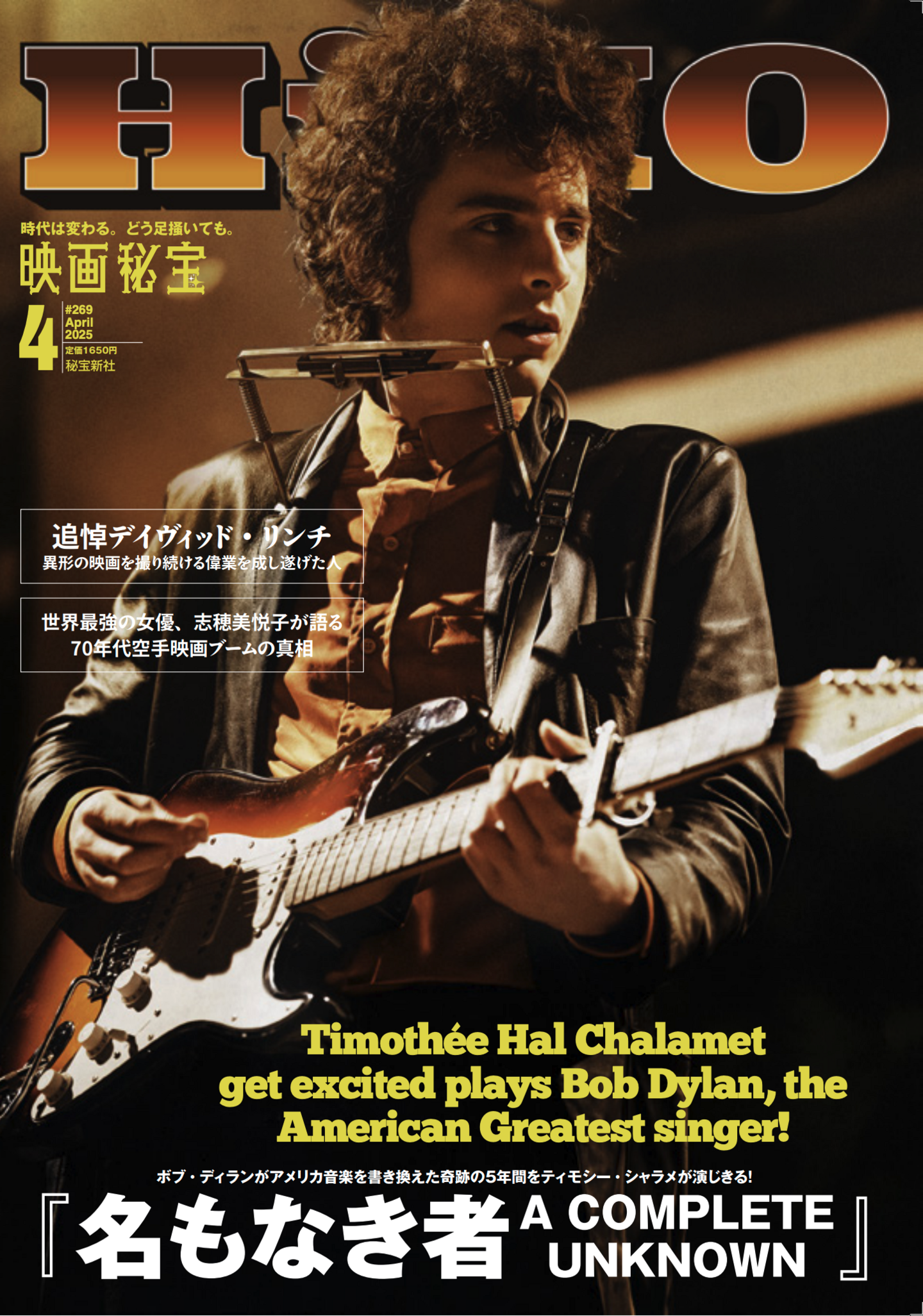 映画とロックが満載の映画秘宝2月号は2月20日発売! 目印はディランに扮してエレキギターをかき鳴らすティモシー・シャラメだ!