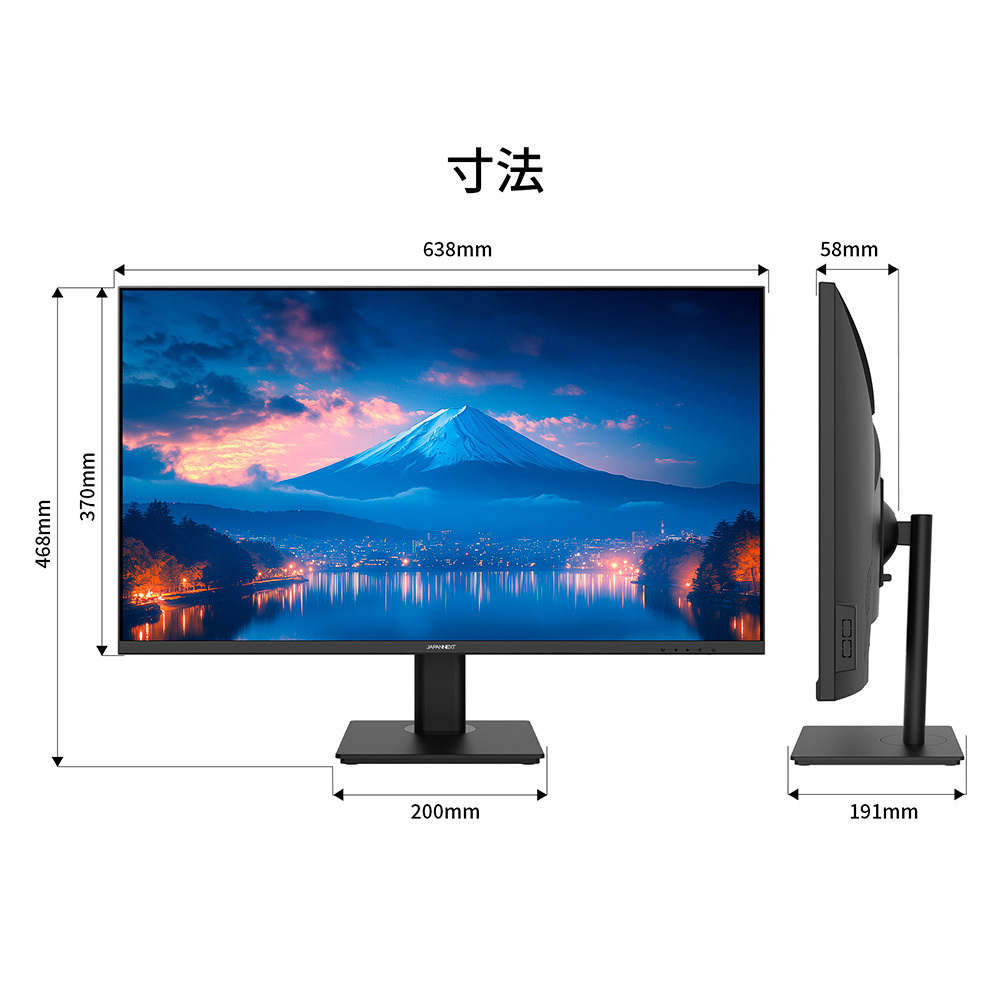 | 入出力端子 | HDMI 2.0 x1 (60Hz) DisplayPort 1.2 x1 (75Hz) USB Type-C x1 (75Hz/最大65W給電) オーディオ出力 x1 |