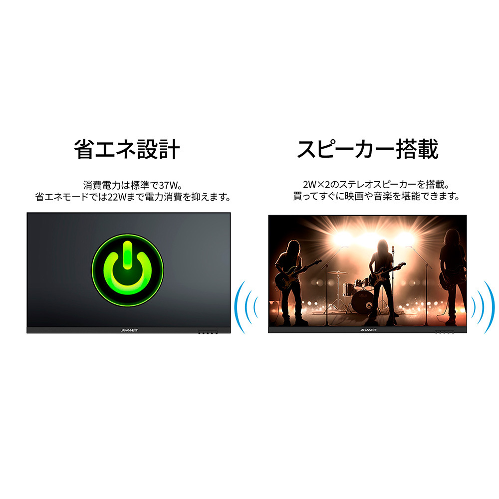 100x100mmのVESAマウントに対応しますので、別売りのモニターアームなどに使用が可能です。2Wx2のスピーカーを搭載します。2年間のメーカー保証が付きます。