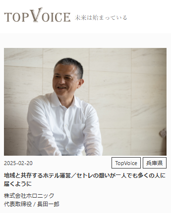 ▼地域と共存するホテル運営/セトレの想いが一人でも多くの人に届くように(「TopVoice」公式サイト)
