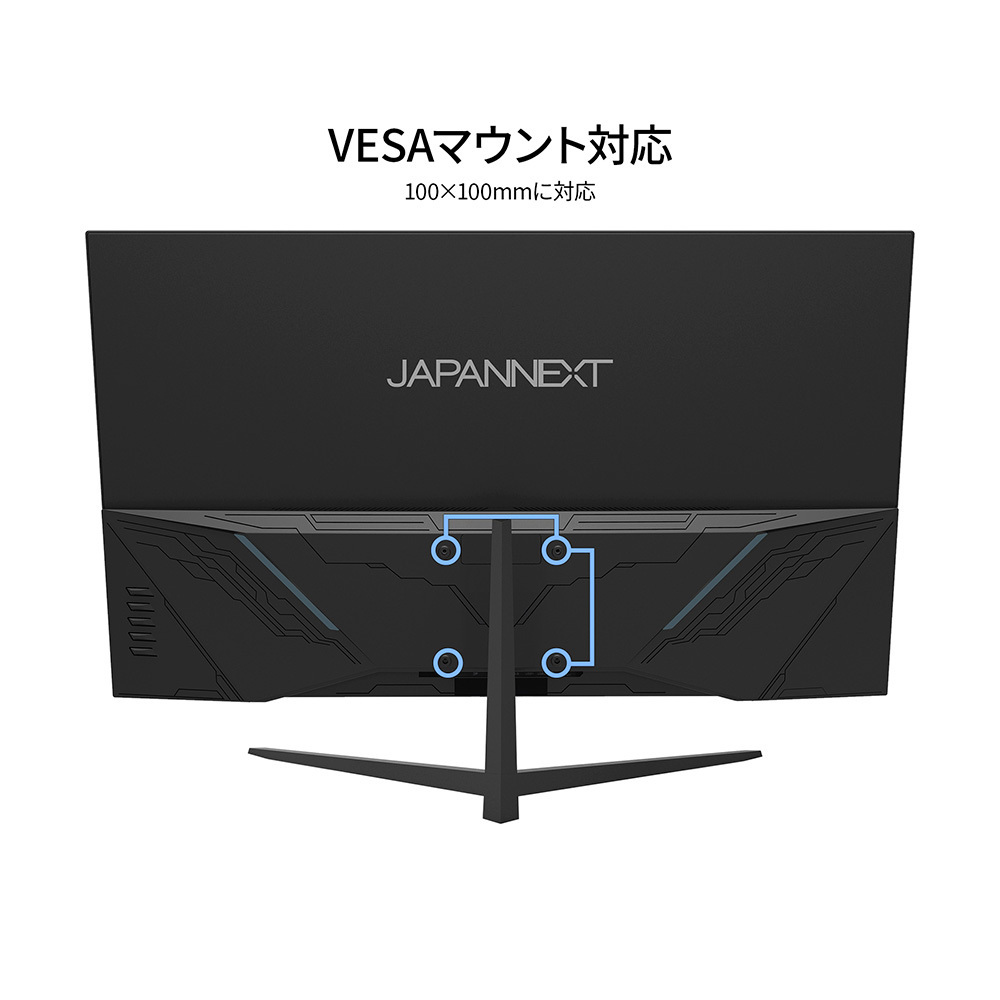 100x100mmのVESAマウントに対応しているので別売のモニターアームやモニタースタンドなどへの取り付けが可能です。2Wx2のスピーカーを搭載します。本製品には2年間のメーカー保証が付きます。