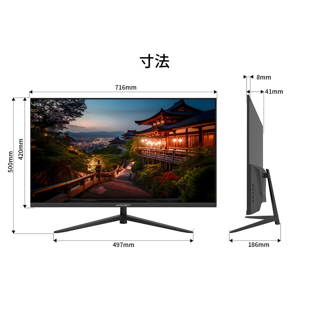 | 外形サイズ(スタンド付) | 高さ500mmx幅716mmx奥行き186mm |