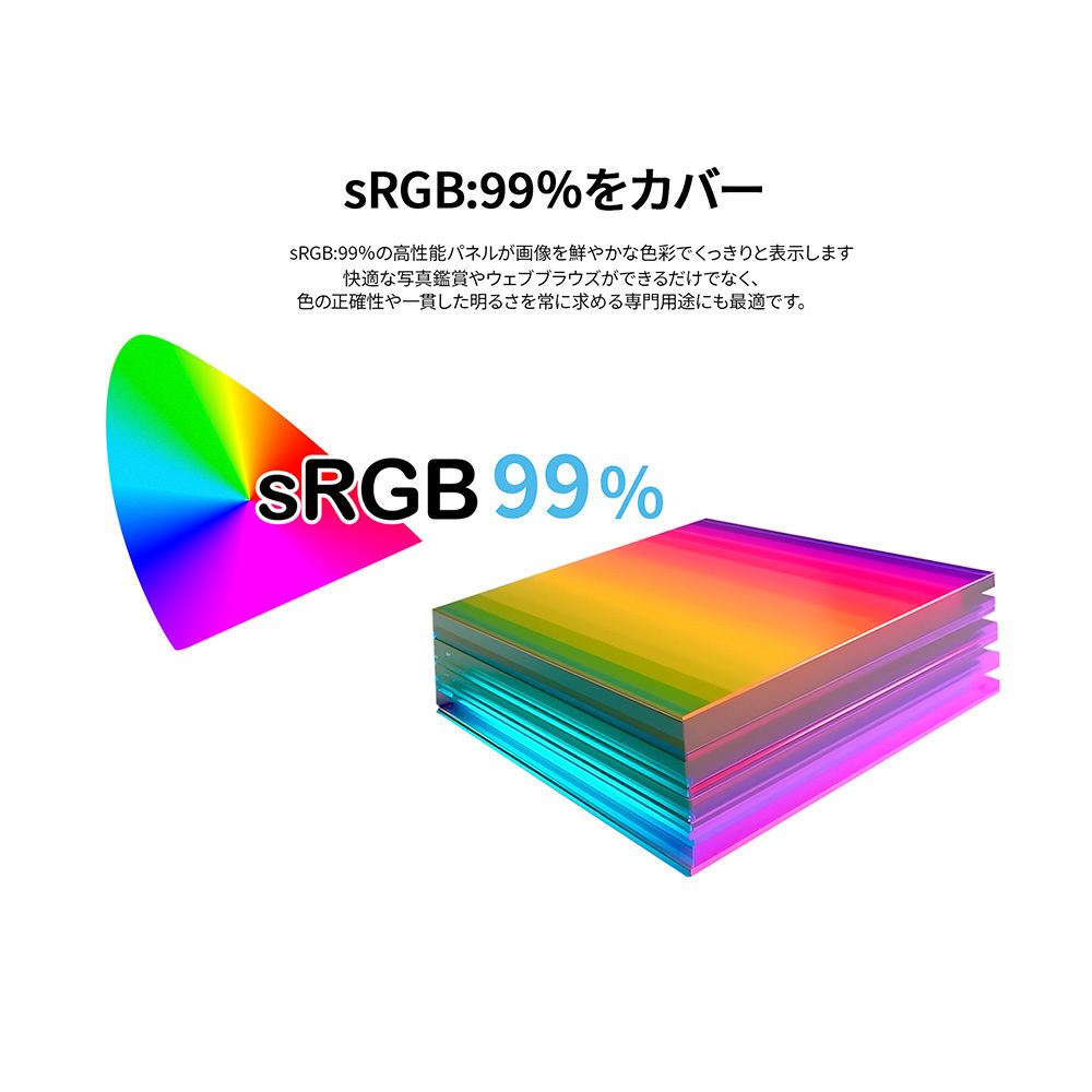 最大輝度300cd/m2の液晶パネルは、sRGB:99%の広色域に対応し写真や動画編集などの作業にも最適です。