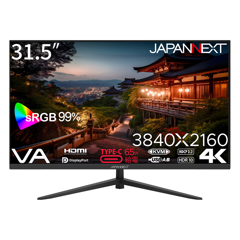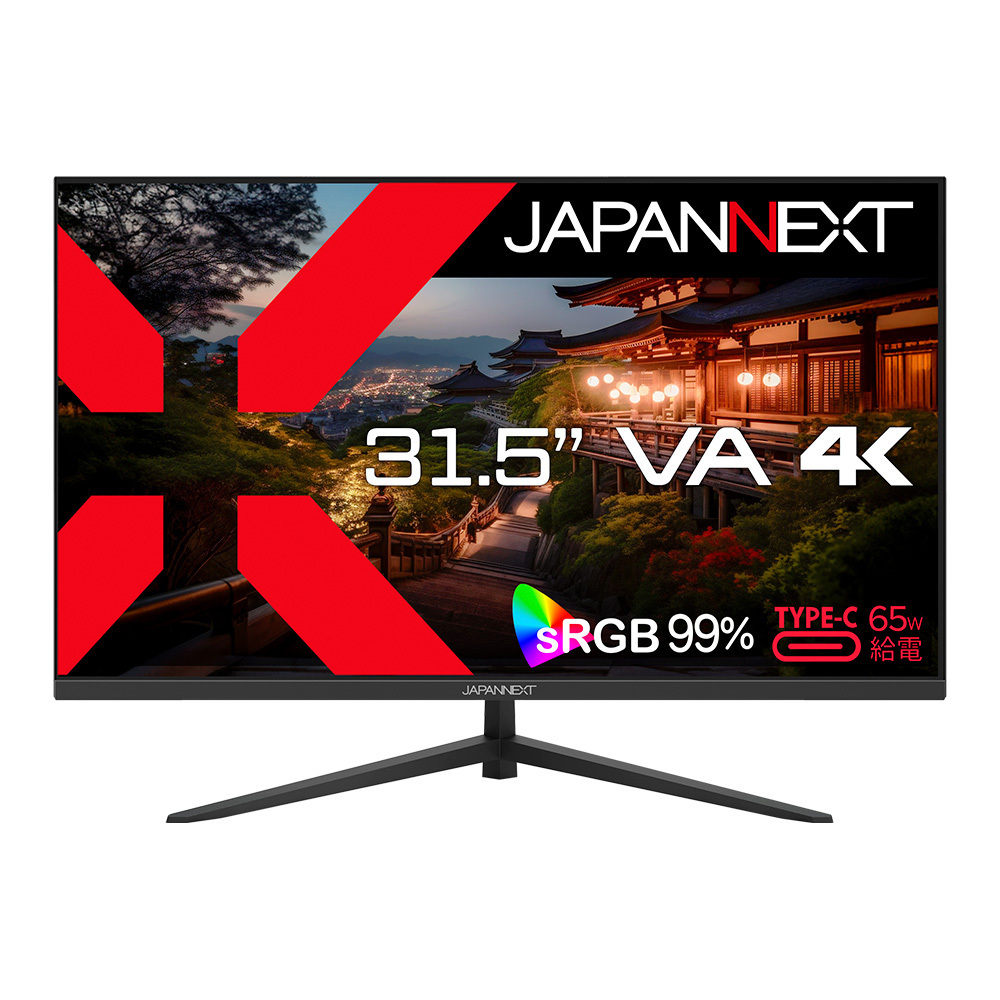 JAPANNEXTが31.5インチ VAパネル搭載 USB-C(最大65W)給電対応の4K液晶モニターをAmazon限定 37,980円で2月28日(金)に発売