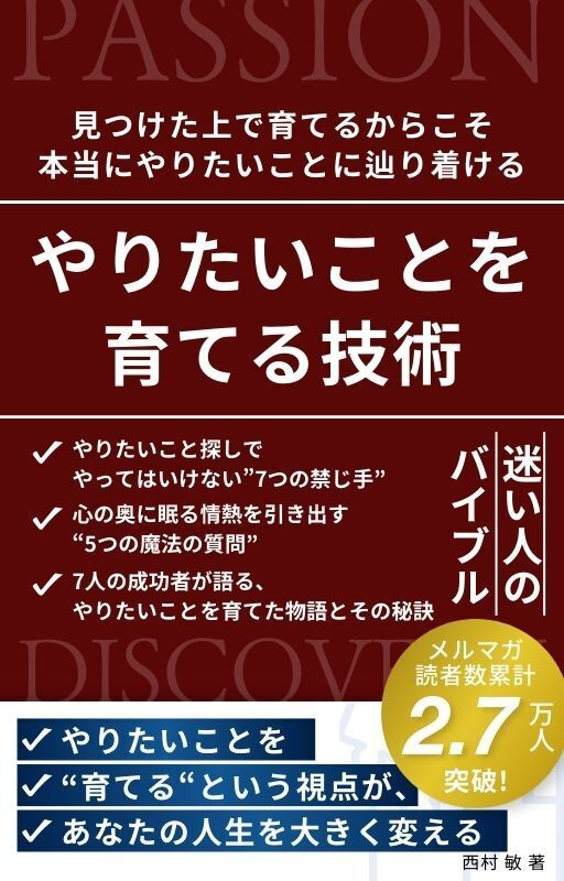本書は、やりたいこと探しに迷う全ての方へ、自分自身の情熱を見出し、育てるための道しるべとなる一冊です。ぜひ、この機会に新たな一歩を踏み出してください。