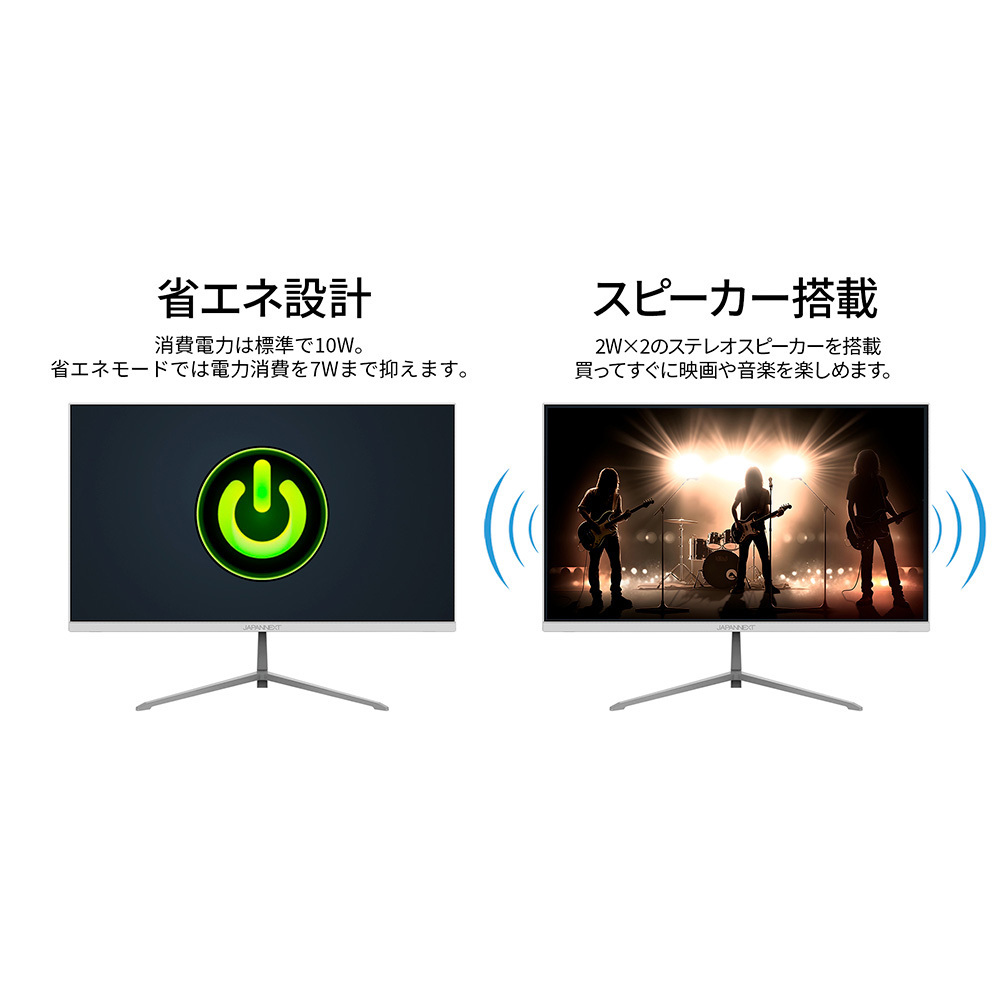 75x75mmのVESAマウントに対応しますので、別売りのモニターアームなどに使用が可能です。2Wx2のスピーカーを搭載しております。本製品には2年間のメーカー保証が付きます。