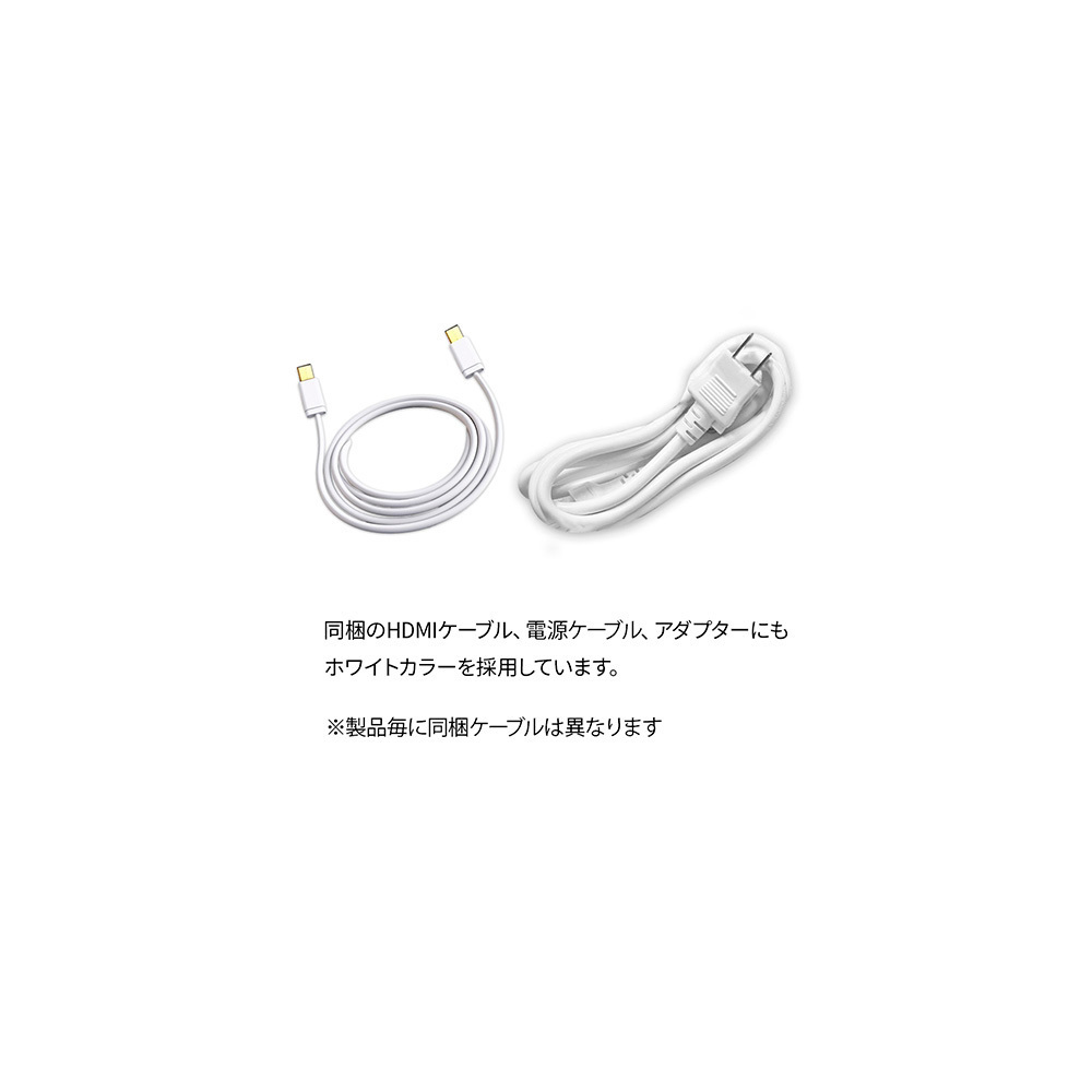 本体カラーにホワイトを採用。モニターベゼルやスタンドも白となっており、爽やかでおしゃれな空間を演出したい場合や、デバイスを白で統一したい場合に最適です。さらに、付属のケーブルや電源アダプターにもホワイトカラーを採用。全体が白基調に統一された部屋や医療機関などでの使用にも最適です。