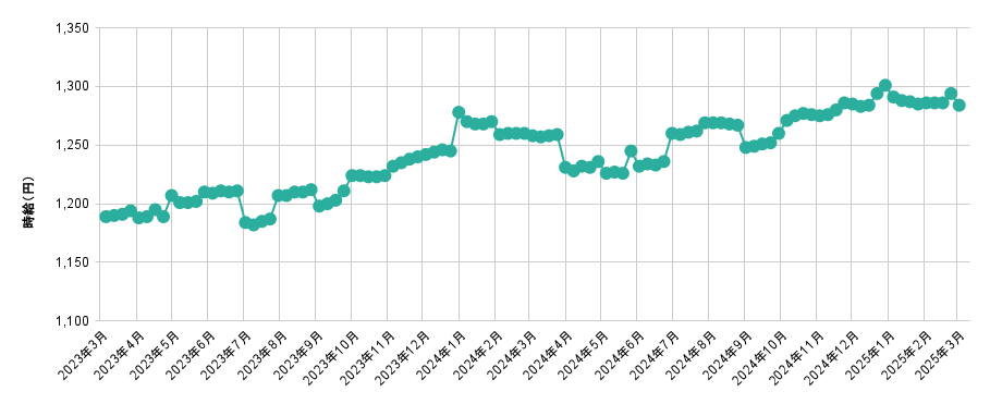 全国アルバイト・パート平均時給は「1,284円」【2025年3月度 アルバイト・パート 平均時給・求人数レポート】