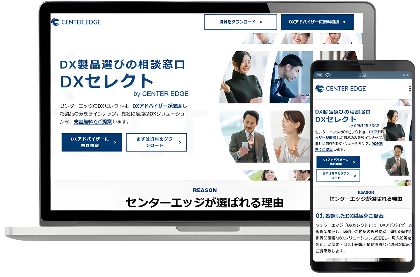 センターエッジ「DXセレクト」は、DXアドバイザーが実際に検証し、厳選した製品のみを提案。貴社の課題や業界に最適なDXソリューションを選定し、導入効果を最大化。効率化・コスト削減・業務改善など最適な製品をご提案致します。