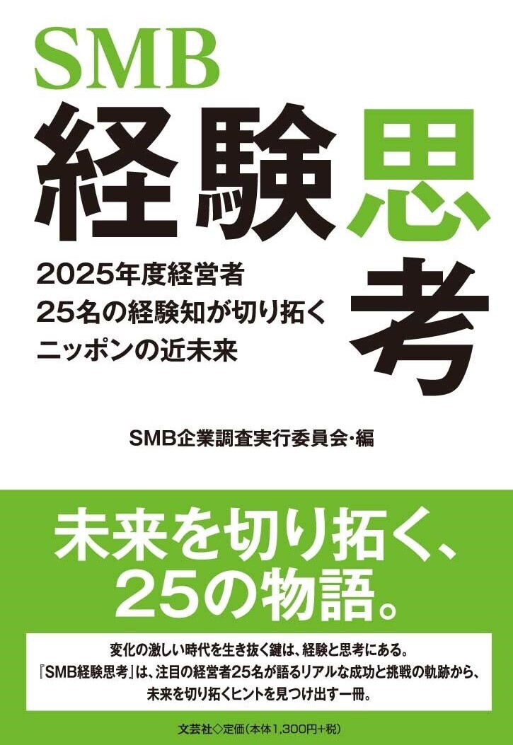 大変ご好評いただいております、「SMB経験思考 ~2025年度注目のSMB経営者25名の経験知が切り拓くニッポンの未来~」(SMB企業調査実行委員会・編)の販売が開始されました!