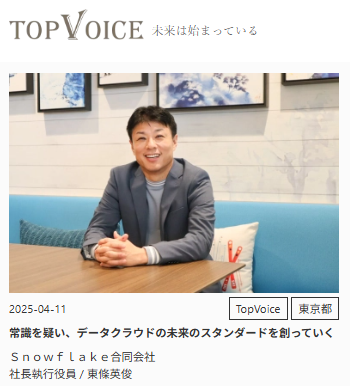 今回、新たに掲載されたのは、「Snowflake合同会社(以下:Snowflake)」の社長執行役員を務める、東條 英俊様のインタビュー記事です。