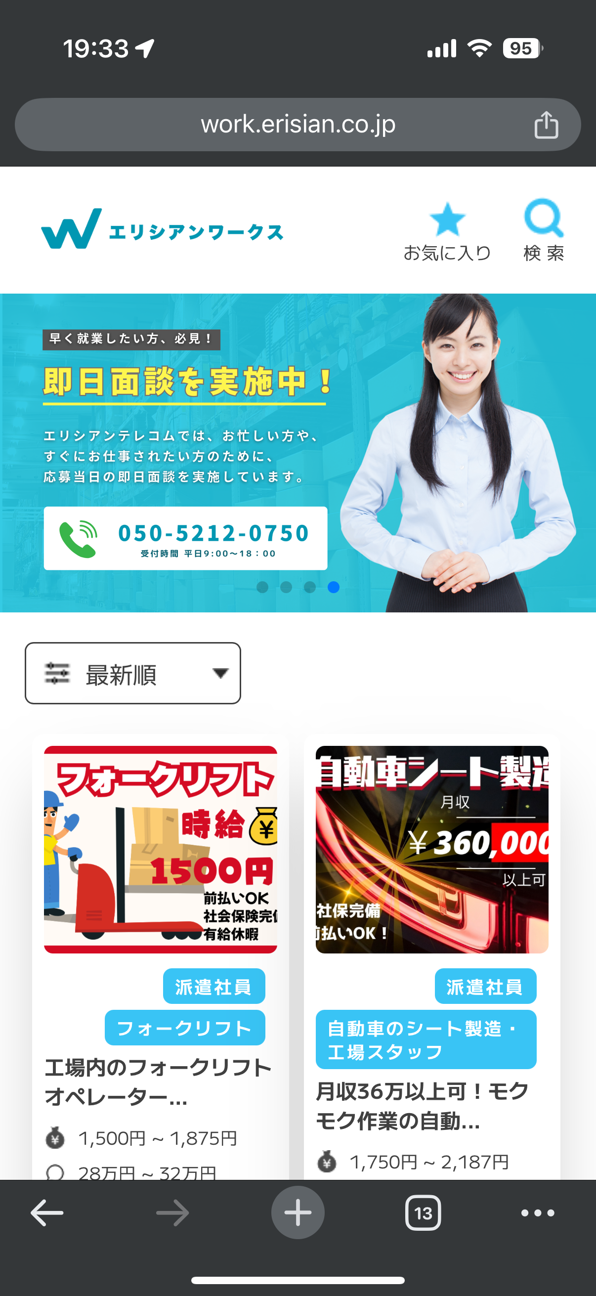 エリシアンワークスは、情報の正確さと掲載企業に一定の基準を設け、求職者により有益な求人情報サイトです。