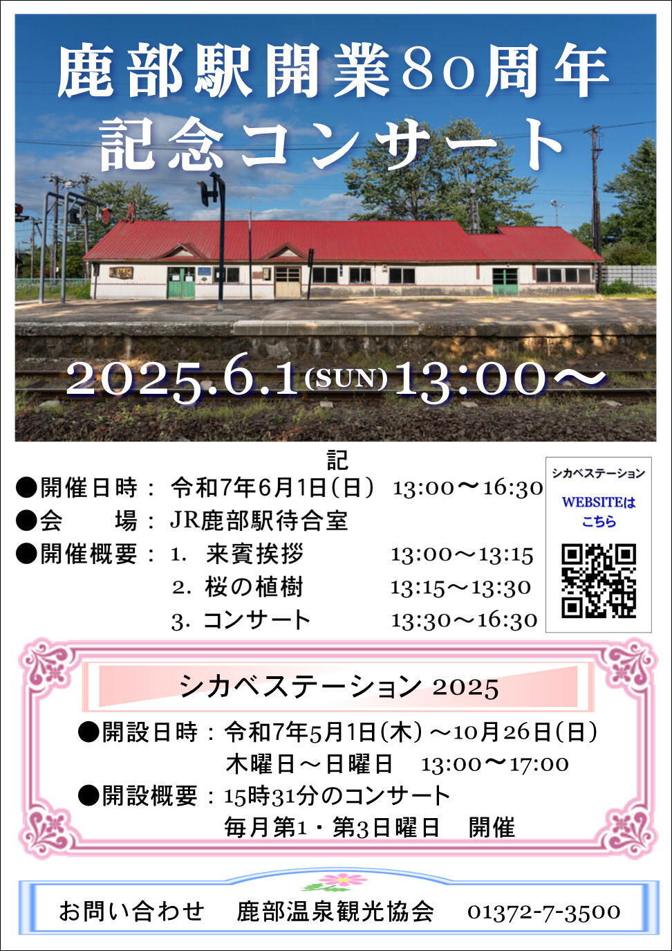 2025年6月1日に開業80周年を迎える鹿部駅で記念コンサートを開催いたします。皆様のお越しをお待ちしております。