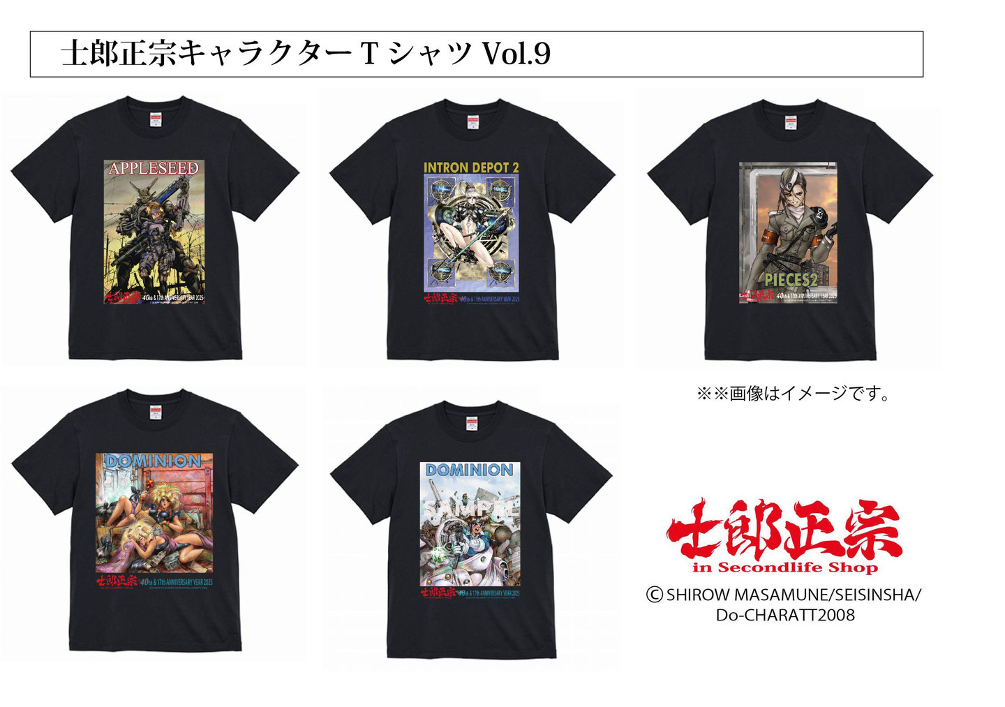 【士郎正宗inセカンドライフショップ】士郎正宗、漫画家メジャーデビュー40周年&ショップ17周年記念Tシャツ、「士郎正宗キャラクターTシャツVol.09」登場!!