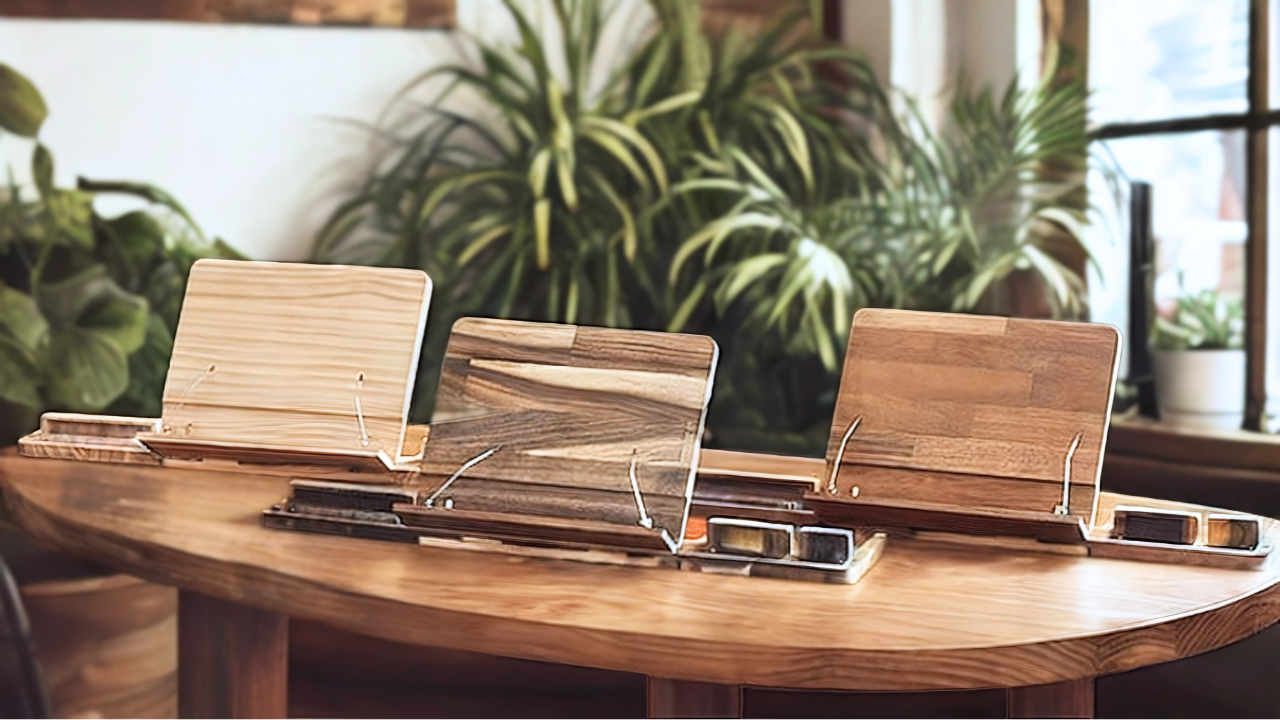 天然木の風合いと機能性を備えた折りたたみスタンドで快適な作業環境を実現します。
