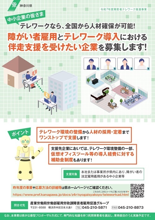神奈川県「令和7年度 障がい者のテレワーク推進事業」受託~法定雇用率への対応等、障がい者雇用の課題解決を無料でサポート~