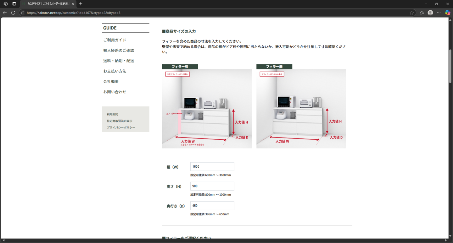 「HAKOTAN」は、PCやスマートフォンから誰でも簡単にオーダー家具を注文できるオンラインサービスです。設置場所に合わせて、幅・高さ・奥行すべて1mm単位でサイズ指定が可能。住宅に関わるあらゆる現場で、ぴったりの収納家具を手間なく発注できます。