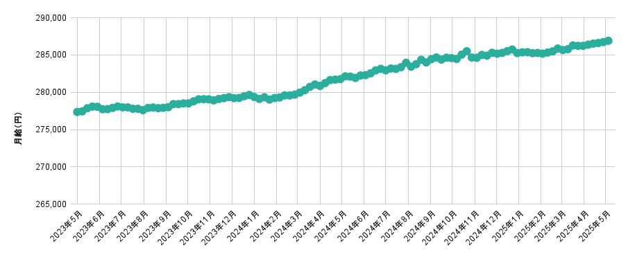 全国正社員平均月給は「286,910円」【2025年5月度 正社員平均月給・求人数レポート】