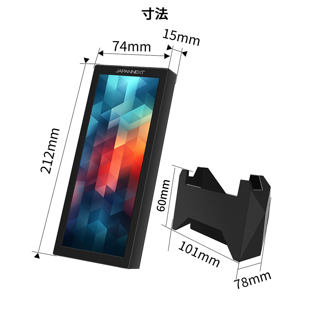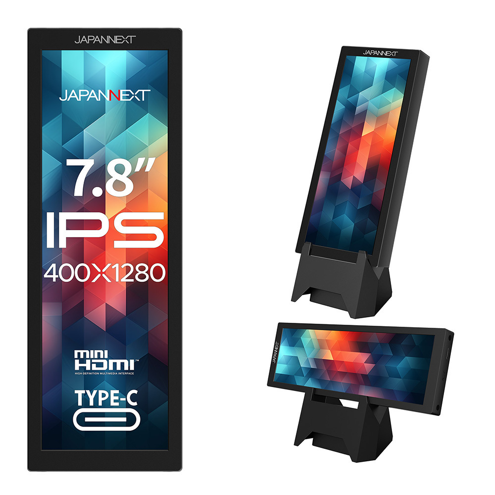 JAPANNEXTが7.8インチ IPSパネル搭載 解像度400x1280に対応した縦型の小型モバイルモニターを14,480円で5月30日(金)に発売