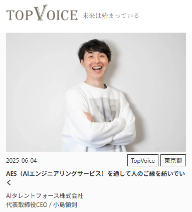 ▼AES(AIエンジニアリングサービス)を通して人のご縁を紡いでいく(「TopVoice」公式サイト)