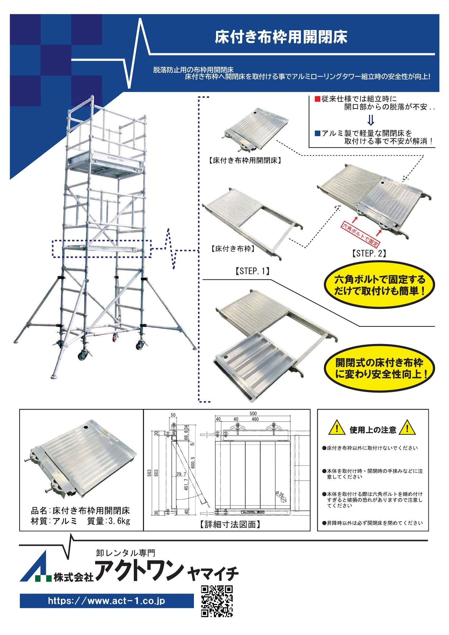 【アクトワンヤマイチ】新規取扱商品「アルミローリングタワー用 床付き布枠用開閉床」レンタル開始