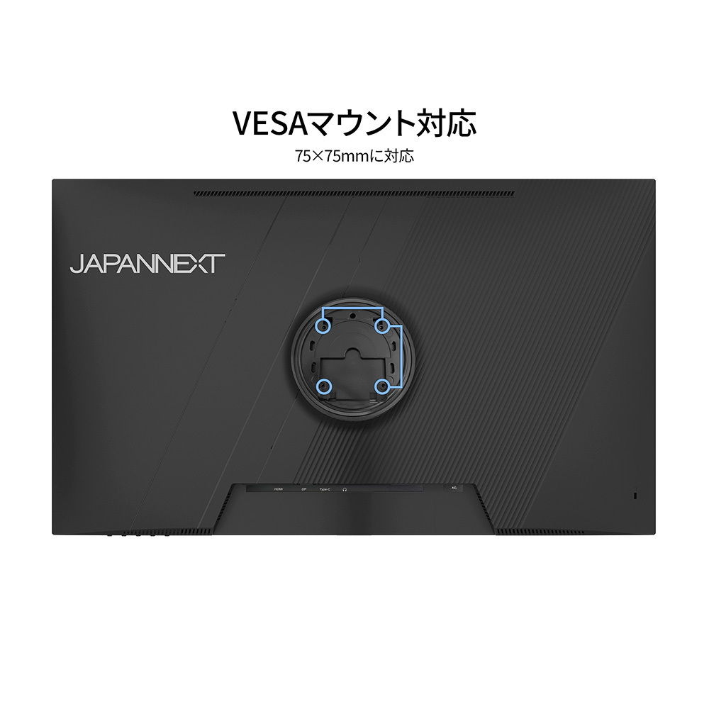 75x75mmのVESAマウントに対応しているので別売のモニターアームやモニタースタンドなどへの取り付けが可能です。2Wx2のスピーカーを搭載します。