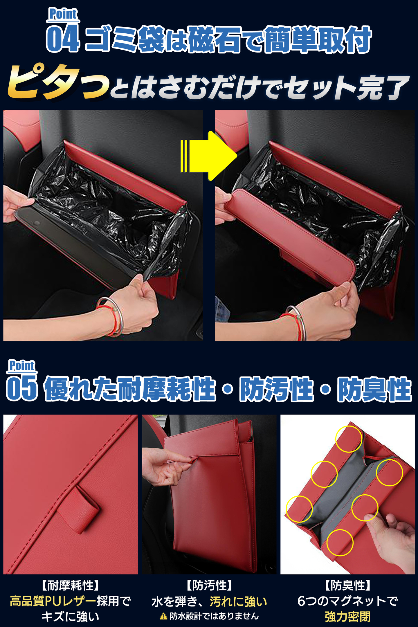 ■全面に高品質PUレザーを採用し、車内のインテリアと調和するマグネット式ゴミ箱