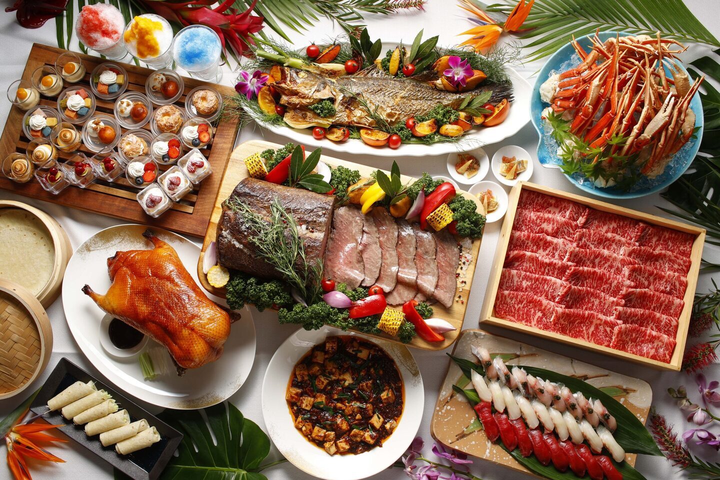 黒毛和牛のしゃぶしゃぶや握り寿司、カービングされる北京ダックとシェフ独自の調理法で仕上げるステーキ等のライブキッチンをメインに、和洋中の様々なお料理をお楽しみいただけます。