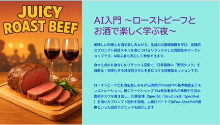 登壇決定!生成AI体験会 『AI入門~ローストビーフとお酒で楽しく学ぶ夜~』 in 豊洲