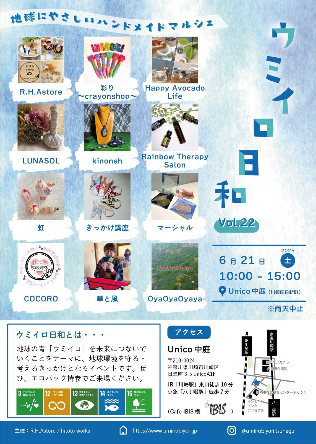 地球に優しいハンドメイドマルシェ「ウミイロ日和_vol.22」を2025年6月21日(土)に開催します。
