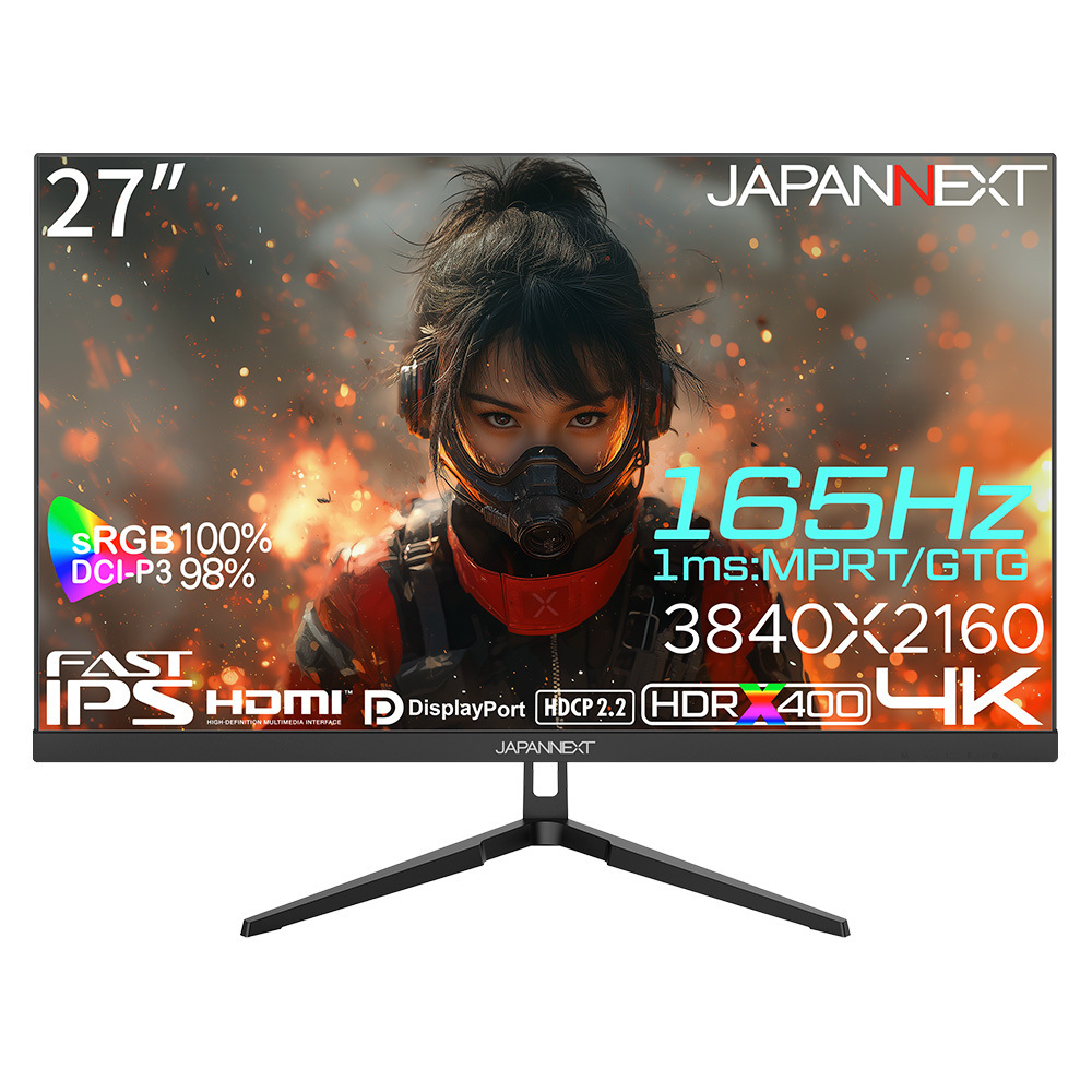 JAPANNEXTが27インチ FAST IPSパネル搭載 165Hz対応の4Kゲーミングモニターを57,980円で6月20日(金)に発売