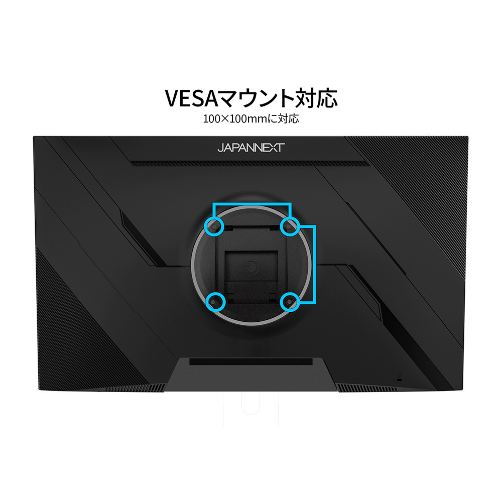 100x100mmのVESAマウントに対応しているので別売のモニターアームやモニタースタンドへの取り付けが可能です。2Wx2のスピーカーを搭載しています。