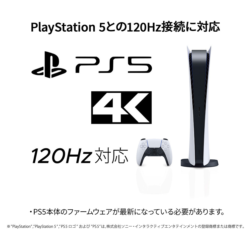 ゲーミングPCだけでなく、PS5との4K:120Hzでの接続にも対応し、大画面で高精細な4Kゲームを存分に楽しめます。*PS5本体のファームウェアが最新になっている必要があります。