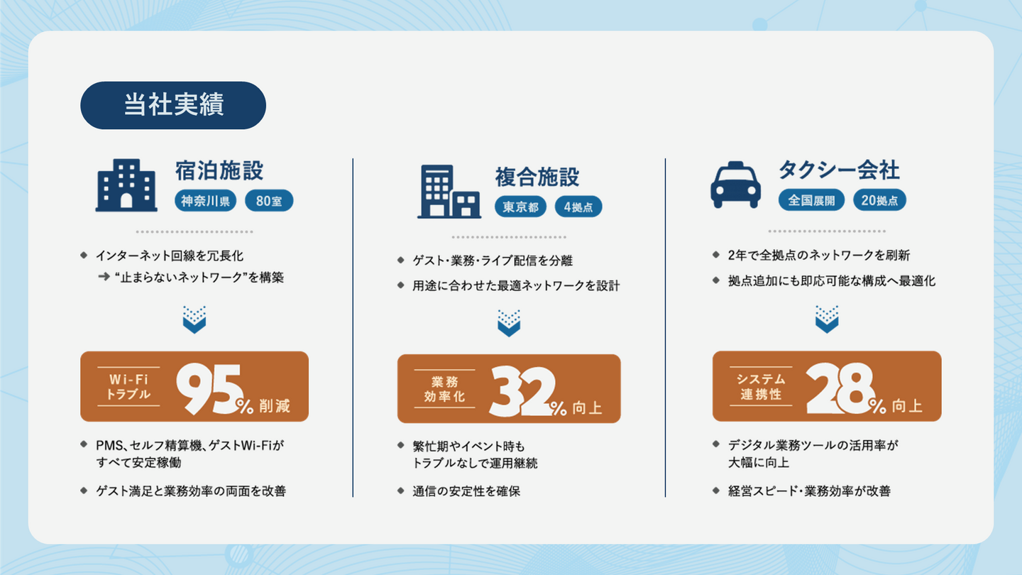 ・PMS/セルフ精算機/ゲスト Wi-Fi がすべて安定稼働