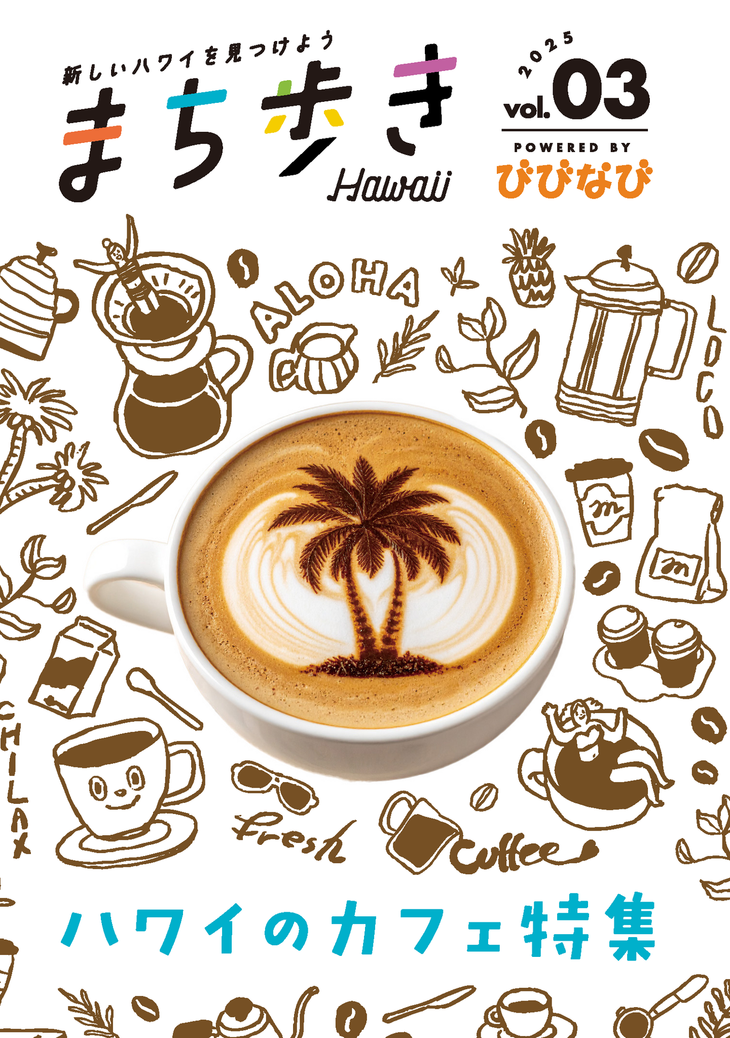 びびなびハワイでは「まち歩き」(ハワイ地域情報)の誌面を発行しました!ウェブ版では誌面に載っていない記事もたくさんご覧いただけます。ワイキキのマガジンラック、日本のハワイ関連店舗、旅行代理店、ウェディング会社、成田空港ラウンジなどにも設置させていただいております。店舗やラックなどで見かけたら、ぜひお持ち帰りください。