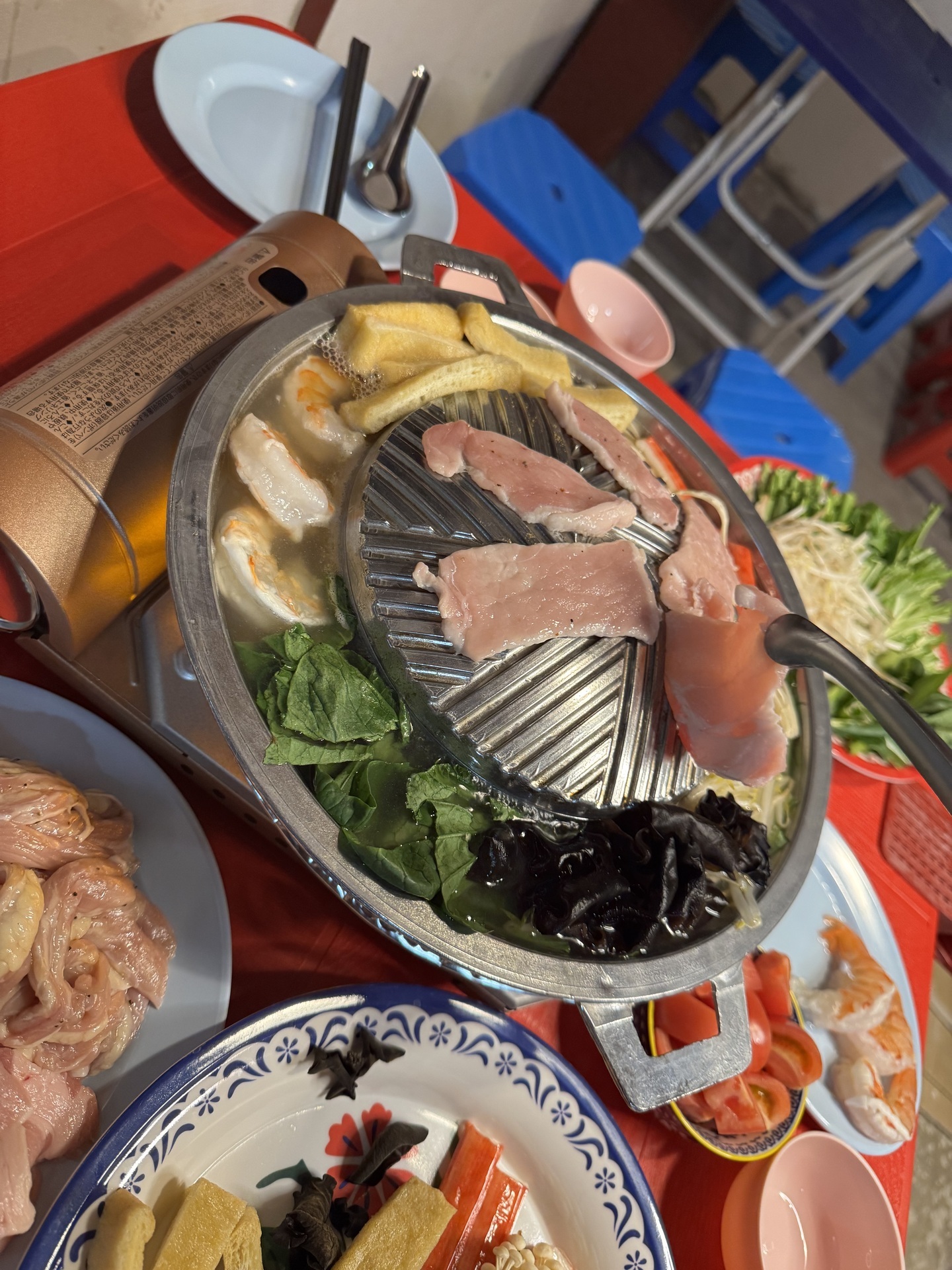 ムーガタは、定番の豚肉・鶏肉・野菜はもちろん、白いスープのムーガタや、タイで定番の甘辛いタイスキソースなど、日本ではなかなか味わえない本場の味を再現。