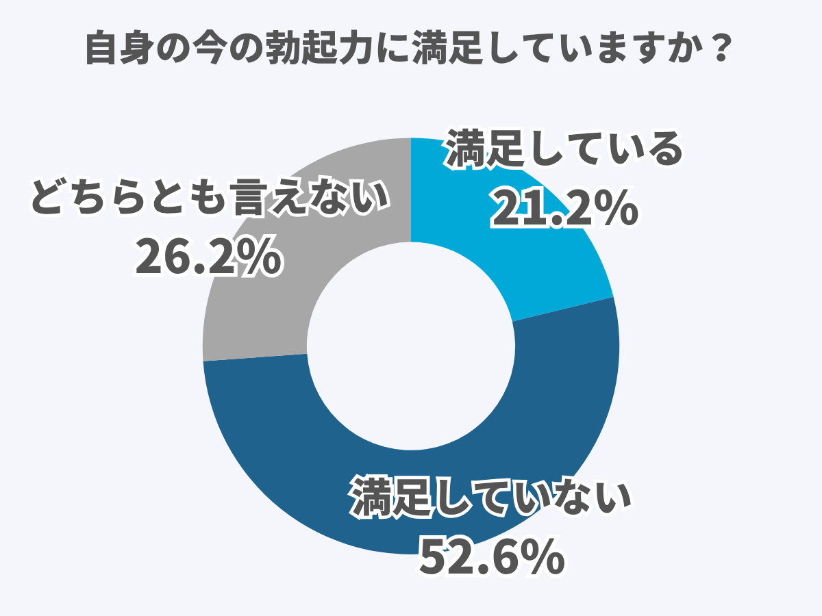 勃起力に満足していない男性は約5割、加齢によって「下がった」と感じている人は6割超